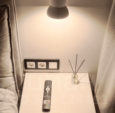 Спальная комната оборудована двуспальной кроватью с ортопедическим матрасом, вместительным шкафом и небольшим телевизором.