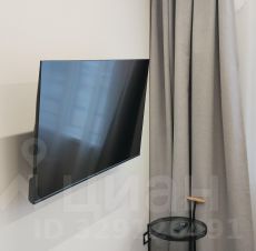 В зоне отдыха есть удобный диван который может использоваться как спальное место и большой телевизор.