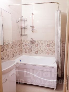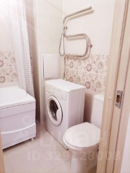 -в ванной комнате: ванна вместо душевой, стиральная машина, навесной шкафчик с зеркалом.