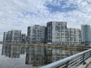 Жилой комплекс расположен в районе с развитой инфраструктурой: магазины, аптеки, кафе и рестораны, ТРЦ Балтийская Жемчужина и Прибалтийский в шаговой доступности. Во дворе прекрасные детские и спортивные площадки. Дом расположен вдоль благоустроенной набережной, являющейся прекрасным местом для прогулок.