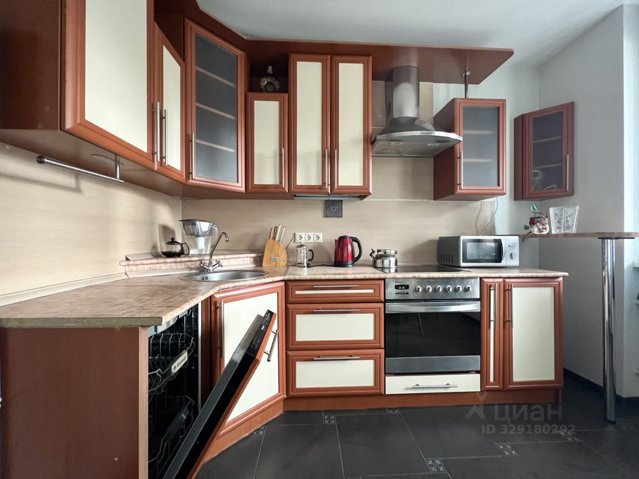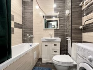 В квартире есть вся необходимая бытовая техника, включая посудомоечную машину, и мебель для комфортного проживания.