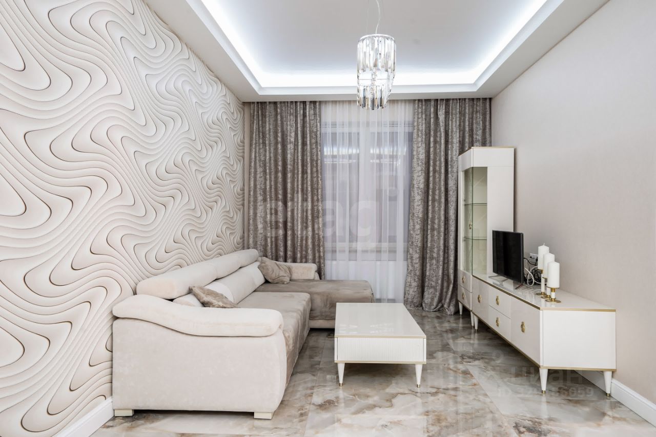 Просторная гостиная, полностью укомплектованная кухня с посудомоечной машиной и обеденной зоной. Изолированная спальня. Ванная комната с душевой кабиной. Отдельная гардеробная комната.