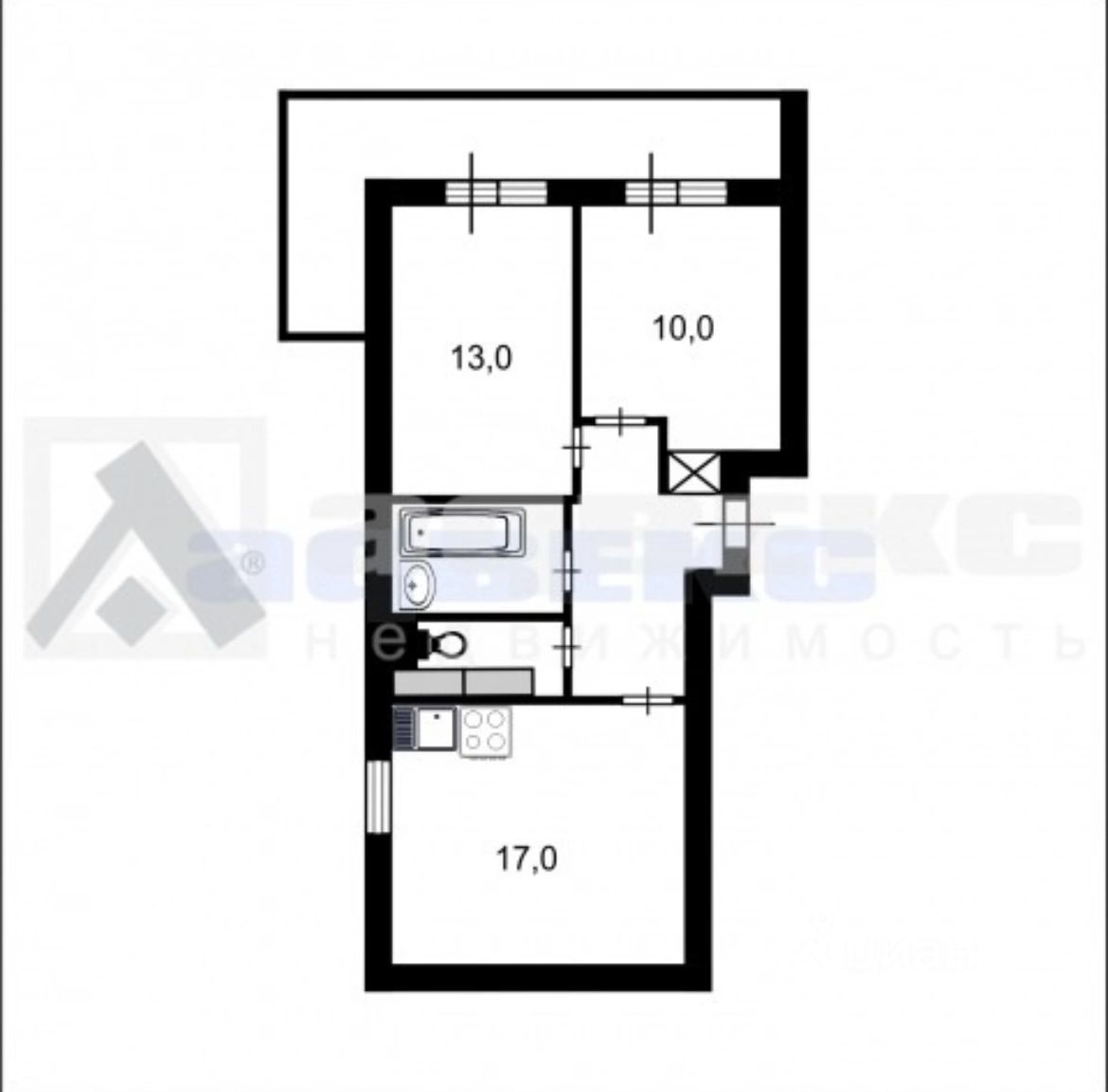 Квартира укомплектована необходимой мебелью и бытовой техникой. Просторный раздельный санузел с ванной. 13-метровый балкон с отличными видовыми характеристиками.