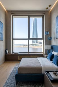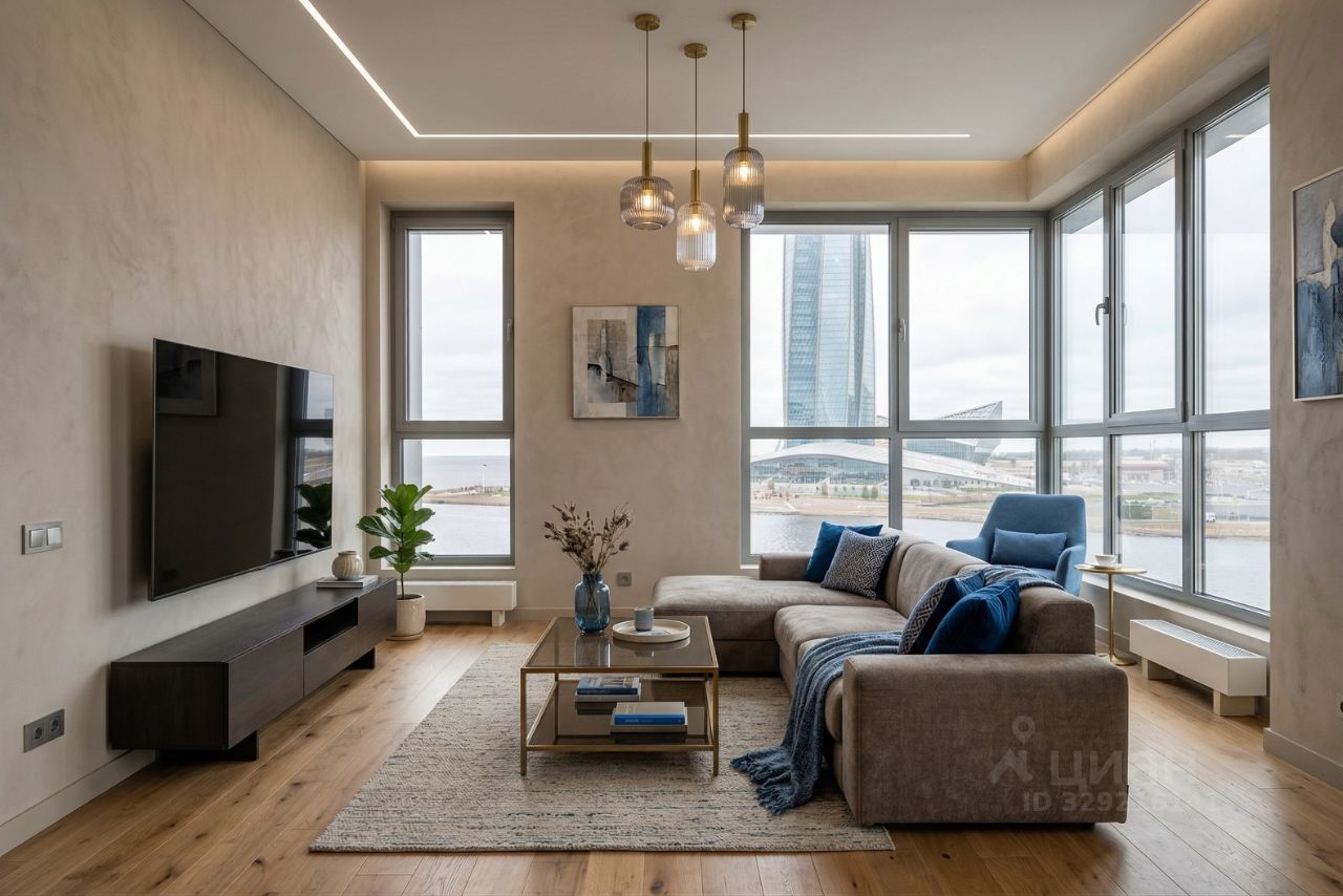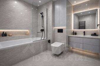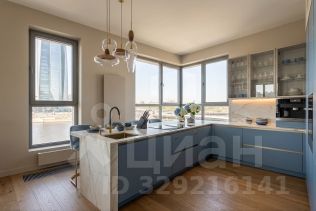 Квартира оформлена в современном стиле, с акцентом на комфорт и функциональность. Просторная кухня площадью 22 кв. м оснащена всей необходимой техникой: холодильник, посудомоечная машина и кондиционер. В комнатах и на кухне имеется стильная мебель. В квартире два совмещенных санузла, в одном из которых установлена ванна, а в другом — душевая кабина. Также в наличии телевизор и стиральная машина.