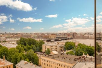 Из окон открывается вид на две стороны, на город, Неву и Литейный мост.
