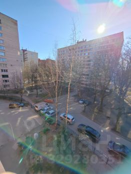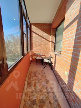 Застекленный балкон с видом на тихий зеленый двор.