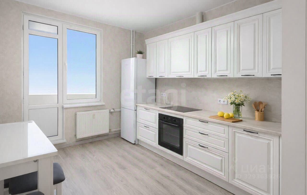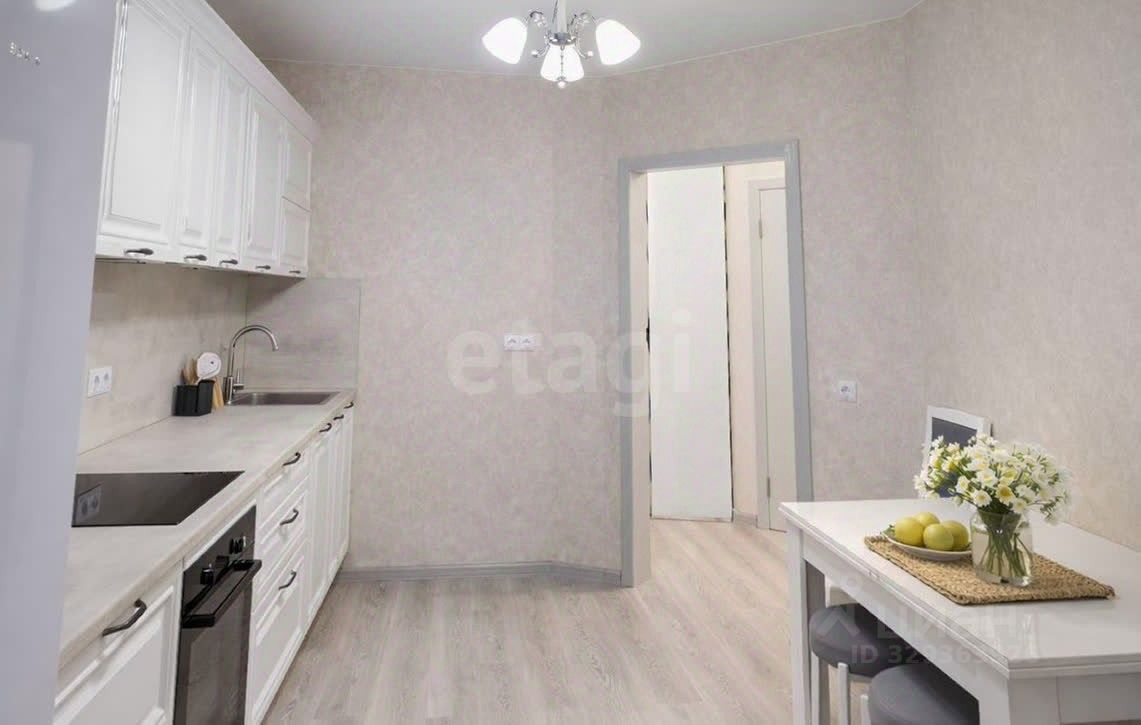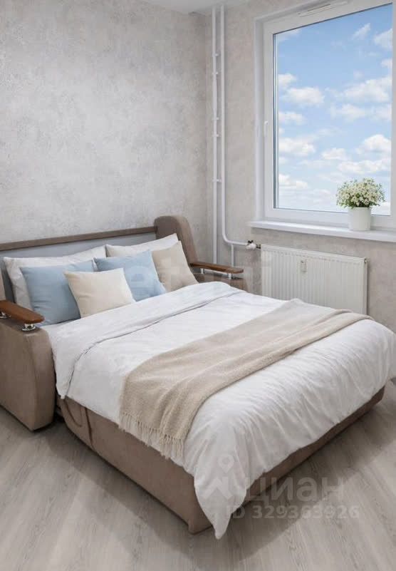 Просторная кухня, застеклённая лоджия, раздельная ванная комната. Две изолированные комнаты. Одна оборудована как спальня, вторая - как гостиная.