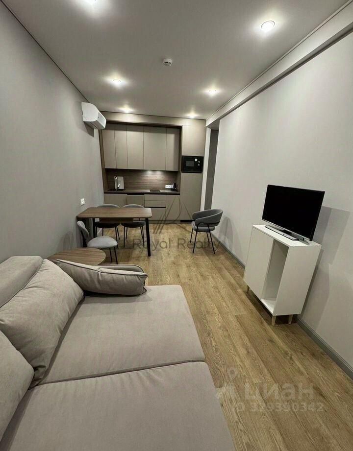 Апартаменты с продуманным зонированием: выделена обеденная зона с необходимой техникой и мебелью, удобное рабочее пространство и зона отдыха с двуспальной кроватью и раскладным диваном. Идеально подходят как для жизни, так и для работы.