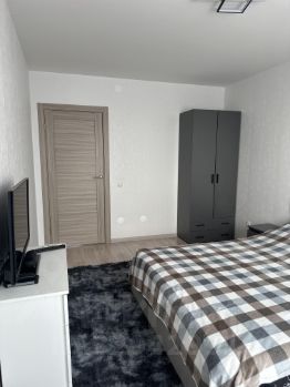 В гостиной установлен удобный диван и телевизор, а также вместительный шкаф для хранения вещей. В спальне большая двуспальная кровать и вместительный шкаф. В квартире есть постельное белье и вся необходимая посуда.