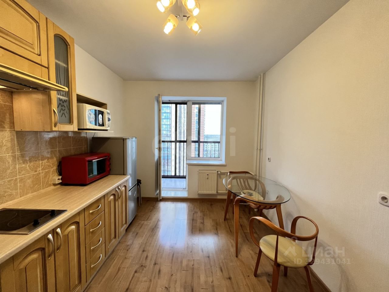 • На кухне имеется вся необходимая бытовая техника: холодильник, варочная поверхность, вытяжка, микроволновая печь, небольшая печка и чайник. Удобный выход на просторный балкон отличное место для утреннего кофе или вечерних посиделок.