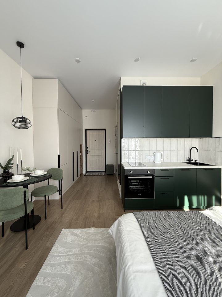 Живите сразу, ничего не докупая — кровать с хорошим матрасом и постельным бельём, кухня с посудой, духовкой и посудомойкой, много шкафов и мест для хранения. Я укомплектовала всё, чтобы вы просто пришли и начали кайфовать.
