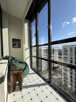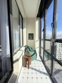 3-метровые потолки и море воздуха — панорамное остекление на балконе делает квартиру невероятно светлой.