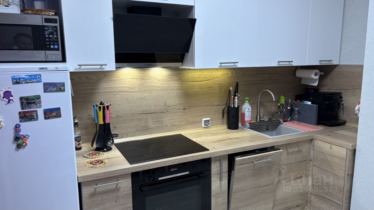 В квартире выполнен качественный евроремонт. Просторная комната обставлена мебелью, на кухне также есть всё необходимое для комфортного проживания. Из техники в вашем распоряжении: холодильник, кофемашина, индукционная варочная панель, посудомоечная и стиральная машины. Ванная комната оборудована ванной, а отдельный санузел добавляет удобства. Есть лоджия.