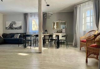 •Просторная Гостиная (40 м²) с настоящим дровяным камином и винтажные элементы декора создают особую домашнюю атмосферу. Раскладной диван, высокоскоростной Wi-Fi , SMART TV, караоке, колонка.