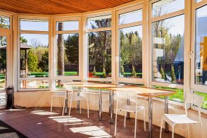 -Спортивные площадки с 1 апреля по 1 октября. Открытая спортивная площадка с инвентарем для тенниса, мини-футбола, волейбола, баскетбола (инвентарь — за дополнительную плату). Крытая площадка с настольным теннисом, бадминтоном, сквошем и падел-теннисом (оплата от 200 до 1 000 рублей за 1 час).