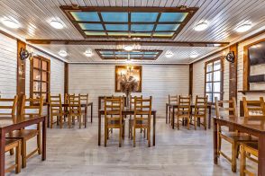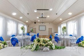 - Банкетный зал на 70 гостей — 25 000 рублей за сутки+уборка+посуда.