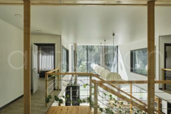 На втором этаже расположены: четыре спальни с панорамным остеклением как на улицу, так и в зону гостиной; каждая спальня с отдельным санузлом с душем или ванной.