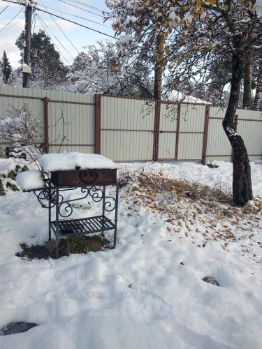 Большая , огороженная территория с беседкой и мангалом( шампуры и решётка в наличии).