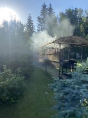 Рядом есть мангальный комплекс под крышей, что позволяет пользоваться им в любую погоду. Освещение так же предусмотрено. В мангале можно использовать только угли ( не дрова).