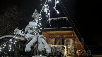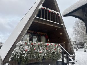 Треугольный дизайнерский домик— шале с балконом (вместимость до 10 человек), общая площадь 72 кв.м.