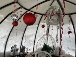 - Гостиная с панорамными окнами в пол с видом на лес (в гостиной: ЖК телевизор, подвесное кресло/кокон с подсветкой, три дивана/кровати с независимыми пружинными блоками и ортопедическим основанием,