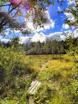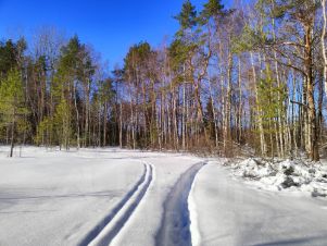Эко-тропа прямо от дома по лесу с указателями 1,5 км до большой качели между деревьями
