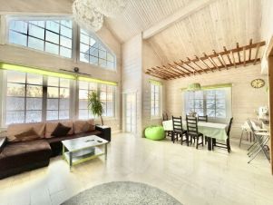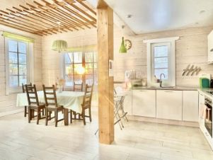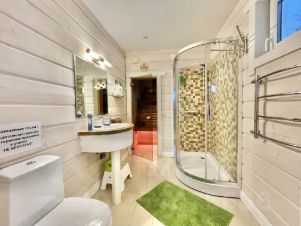 В коттедже 4 спальни, кухня, столовая-гостиная, 2с/у, сауна, камин и большая терраса. Для Вашего удобства весь первый этаж отапливается тёплыми полами. Кондиционер.