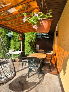 Отдельно стоящий 2-х комнатный гостевой дом со следующими удобствами: горячая/ холодная вода, в санузеле (душевая кабина, унитаз, раковина); мебель, холодильник,2 телевизора, Wl-Fl, эл.плита, микроволновка, мультиварка,чайник, блендер. Постельное белье СВОЁ, либо 200 рублей за комплект и два полотенца. Предоставляются моющие средства, туалетная бумага. На зелёной территории имеется беседка( пристроена к дому), мангал (шампуры), садовая мебель ,шезлонги, зонт. Приглашаем пары, семью с детками, со старшим поколением, !!! однозначно без шумных компаний! На закрытой территории находятся гостевой домик и дом хозяев, также имеется место парковки для вашего автомобиля. Залог 3000 руб. - возвращается при выезде.