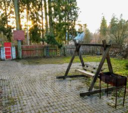 На придомовом участке есть мангал и качели.