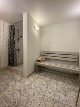 Цокольный этаж:  двуспальная кровать, гардероб, санузел, сауна, душ, терраса;
