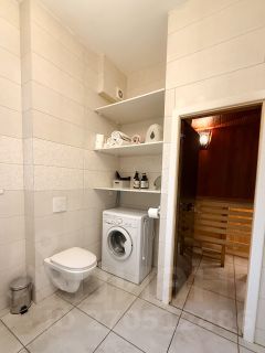 Отдельный санузел на первом и на втором этаже со стиральной машиной.