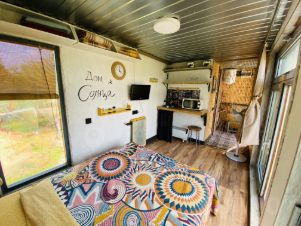 Двуспальная кровать, санузел на каждом этаже. ВНИМАНИЕ: вход на 2 этаж через улицу! До 4х человек. Кухня на 1 этаже.
