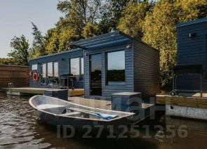 Уютный плавучий коттедж на 4 человек, 1 спальня (огорожена выдвижной перегородкой), с большими окнами и открытой террасой.