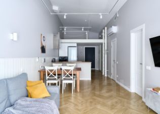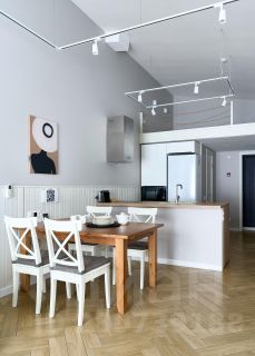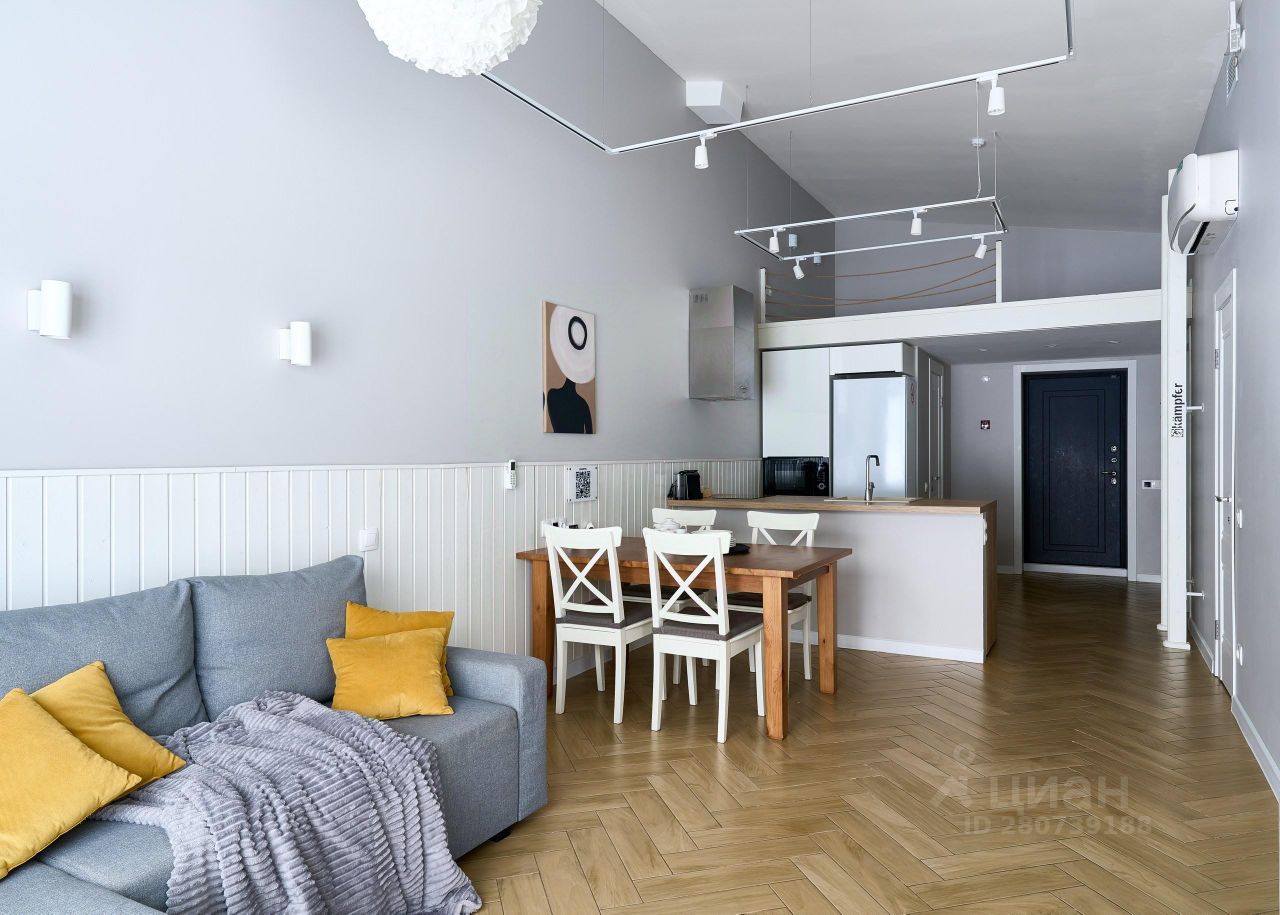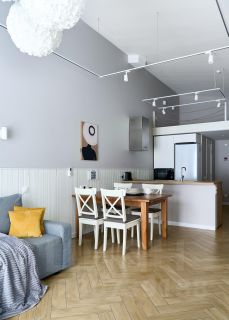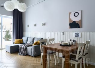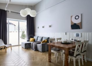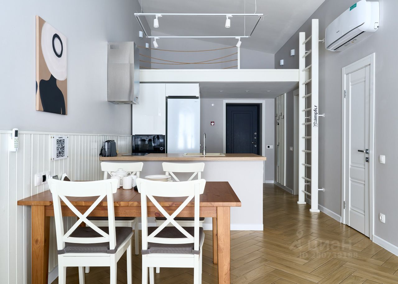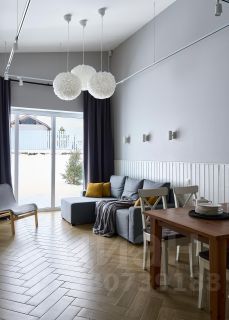 • Просторная гостиная: кухня с островом, обеденный стол для 6-ти Гостей и уютный раскладной угловой диван.