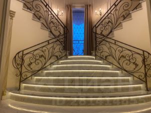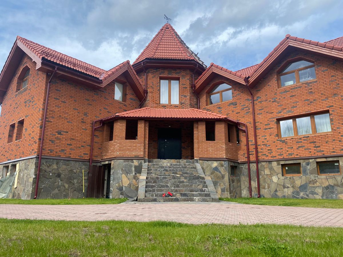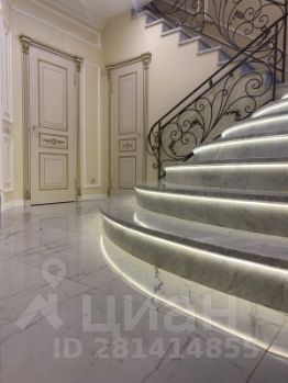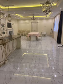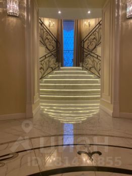 В доме 5 санузлов с большими угловыми ваннами, просторные гардеробные, уютные спальни с двуспальными кроватями, огромная кухня-гостиная, большой круглый холл под куполом на втором этаже