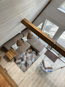 - Панорамные окна с видом на лес (на всех окнах шторы блэкаут)