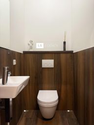 на 1 этаже: кухня-гостиная, гостевая спальня, три санузла, холл, котельная