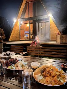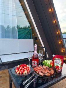 Современный дом в стиле A-FRAME ждёт своих гостей.  Есть мангальная зона со всем необходимым (мангал, шампура, решетки).