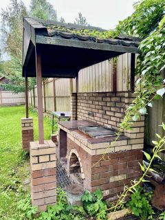 Участок: газон, есть мангал, вся территория огорожена высоким забором, также на участке расположены уличные фонари, есть парковка на 2-3 машины.