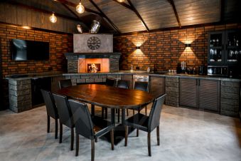 - отдельное строение беседки (каминный зал) с панорамным остеклением.