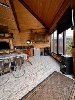 Беседка с панорамными окнами и теплыми полами, для комфорта и отдыха имеется: