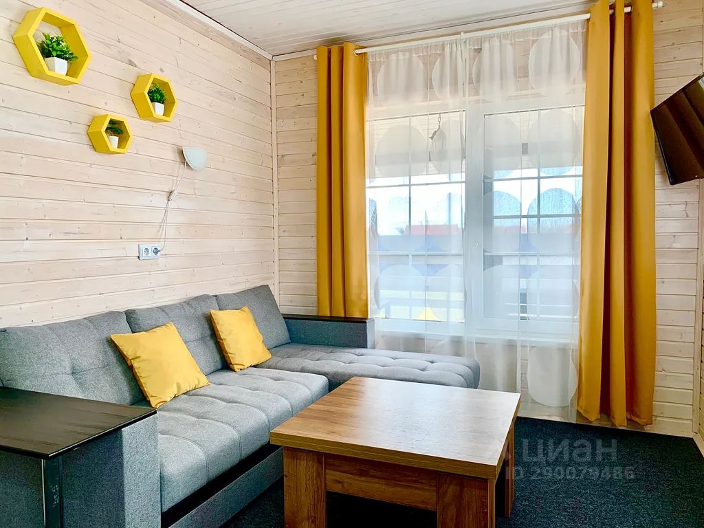 - Две светлые спальни с удобными двуспальными кроватями и просторная гостиная-кухня с мягким диваном для отдыха;