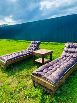 - Специально оборудованная площадка с шезлонгами и мягкими матрацами для солнечных ванн и отдыха на свежем воздухе;