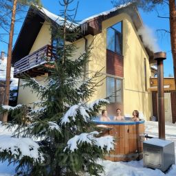 Спа-Коттедж с Джакузи под открытым небом, с аэромассажем, ИК сауной, русской баней на дровах, комнатой отдыха, камином, террасой оформленной в стиле банкетного зала с зоной барбекю, для спокойного отдыха или празднования торжеств интеллигентно, в узком кругу друзей или родных