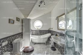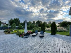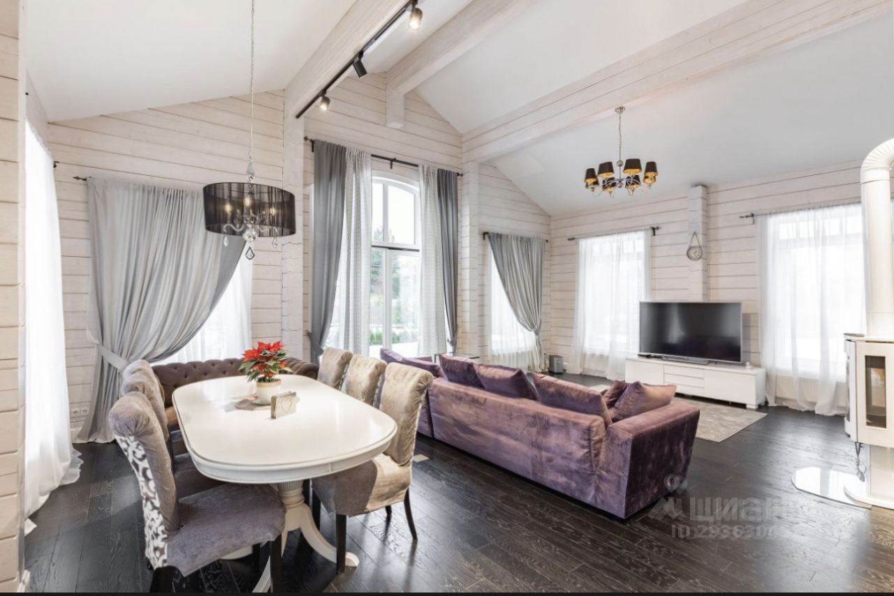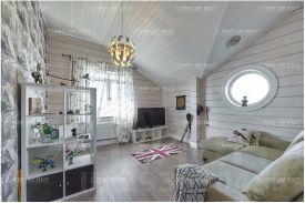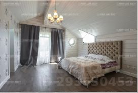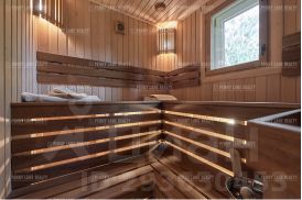 В доме 4 спальни, кабинет с камином, большая гостиная с поворотным камином и выходом на террасу, удобная кухня, оборудованная качественной бытовой техникой, сауна с комнатой отдыха СУ и выходом на террасу.