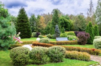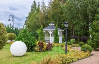 Благоустроенная территория, стильный ландшафтный дизайн.