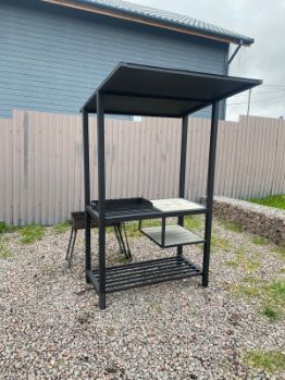 Есть большой мангал с крышей и шампура.