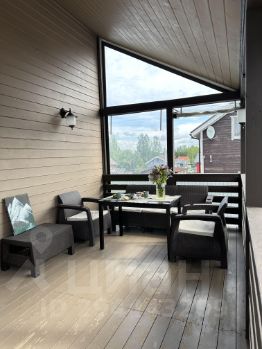 Красивая терраса с гибким стеклом, даже в пасмурную погоду можно провести время на воздухе