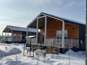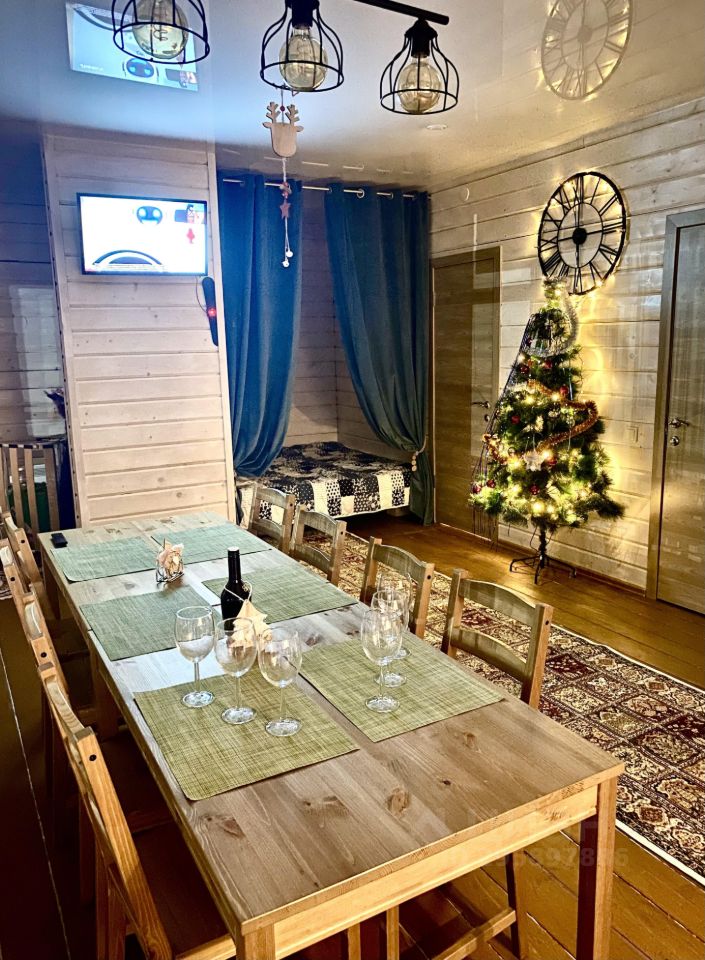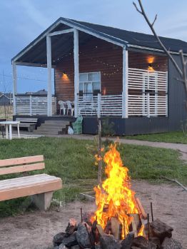 -для больших компаний можно арендовать несколько домов , в одном доме накрыть банкет ( добавляем столы и стулья , комфортно до 15-17 человек ), потом разойтись отдыхать по домикам .