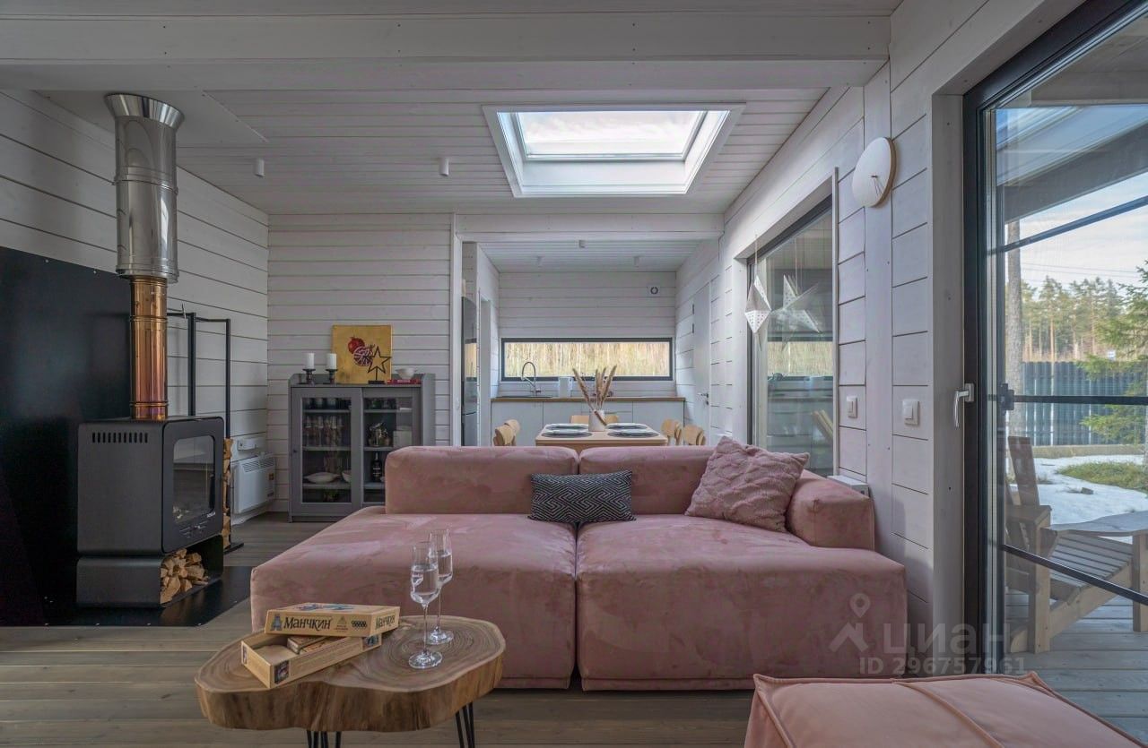Дом находится в коттеджном поселке "Акватория", поселок расположен на берегу Финского залива, наш участок находится в 1, 5 км от воды.